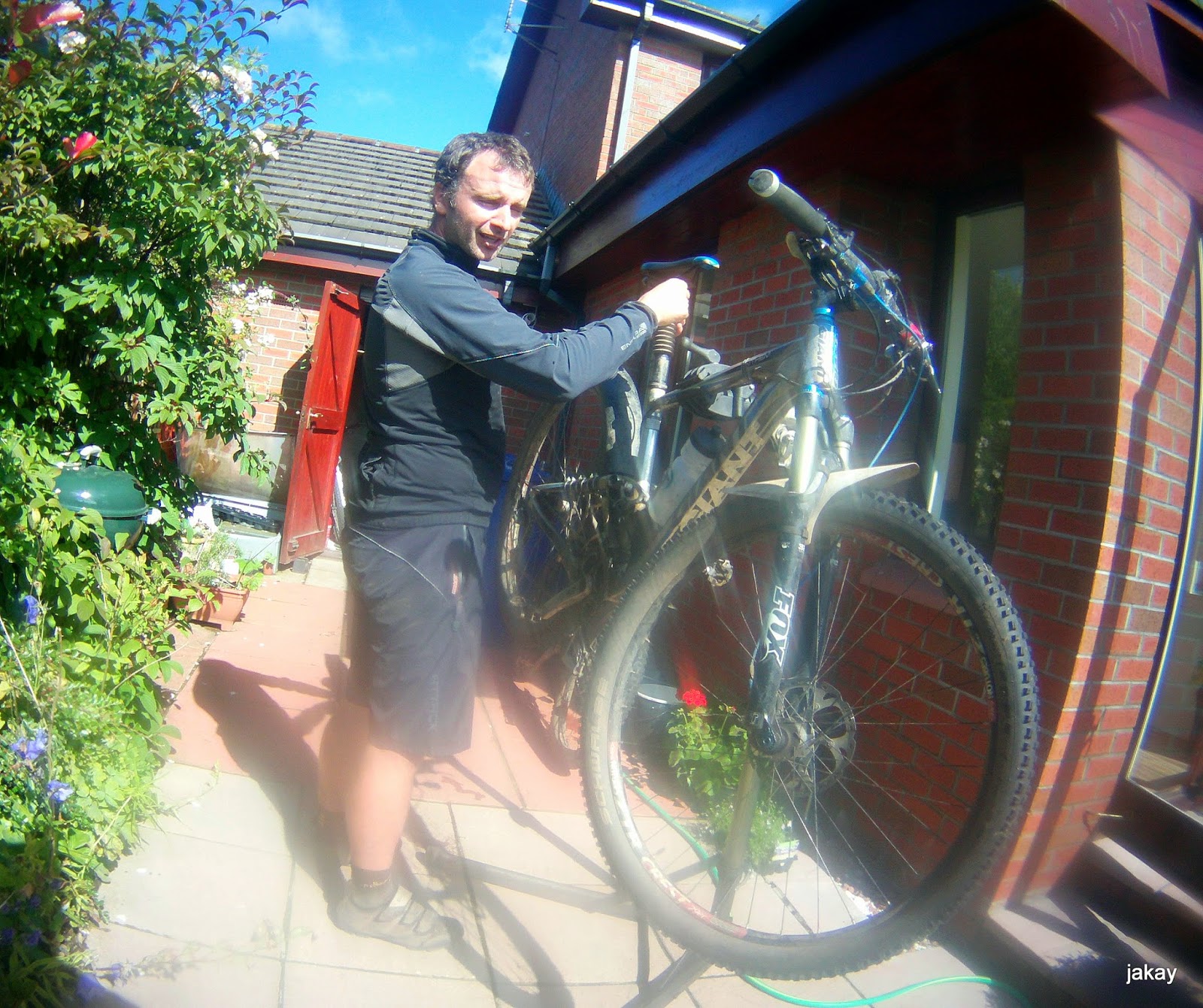 Baz ended up with no rear brakes after some speedy descending and decided on a change of pads....it didn't help much, but at least Clive got a bit of sunbathing in during the stop!